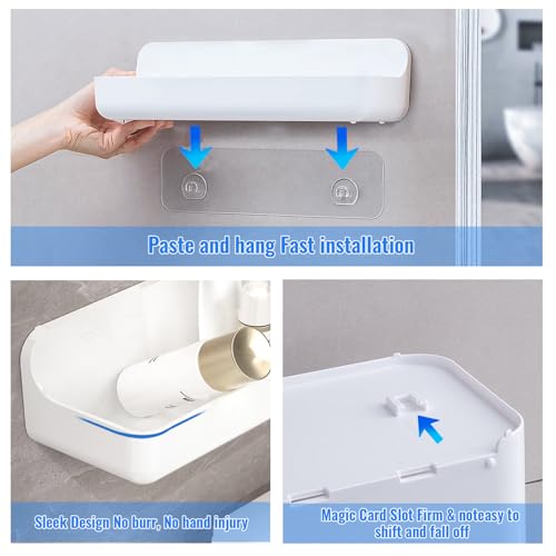 - 【Strong Adhesive Bathroom Shelf】 No tools or drilling are required. Our bathroom shelves no drilling feature strong adhesive tapes that ensure a secure hold without damaging your walls. Simply clean and dry the smooth surface, apply the tape to the wall, squeeze out the air, attach the self adhesive bathroom shelf to the slots of the tapes, and wait 24 hours before use.