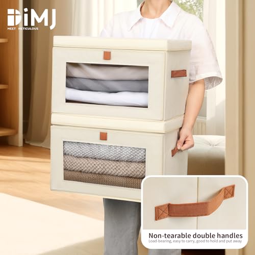- [70.5L Stackable Box with Dual Opening Way ] DIMJ storage bins feature a top detachable lid and a front opening with a convenient handle, allowing you to access items without moving boxes. Perfect for maintaining an organized and easily accessible space