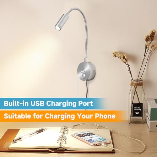 - 【TWO CONNECTION WAYS】- Equipped with plug, gooseneck arm 360° fully adjustable, wall/plank/headboard mounted provides you a convenient use. You can use the plug insert to the switch . or you can cut down the wire then connect it to the wires embedded in the wall. Very stable after simple installation, will not occupy the space.