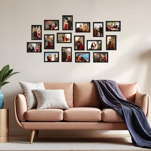 - Wall Collage: Decorate your interior space with this set of 16 classic black photo frames to create a personalised photo wall and add decorative highlights to different areas.