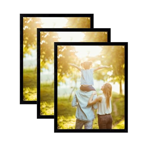 - Pack 3 Black Frames Set – This set includes three 8 x 10" plastic picture frames with a sleek black finish. ideal for home galleries, desks, or wall collages.