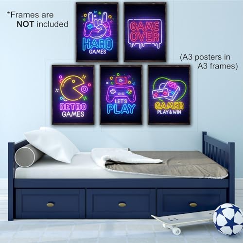 - Set of 9 x A3 Size Teenage Boys Neon Gaming Unframed Quality Prints