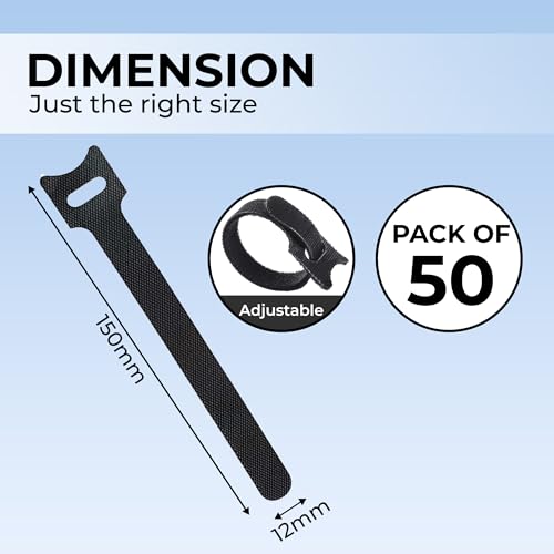 - ✅ CUSTOMISABLE LENGTH: Each tie measures 150mm x 12mm and can be easily joined together for extra length. Perfect for large bundles or extra-long cords.