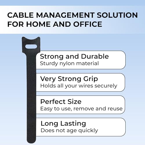 - ✅ REUSABLE AND ADJUSTABLE: Made from high-quality hook and loop nylon, these cable ties are designed for repeated use—no fraying, no cutting, just simple peel-and-stick functionality every time.