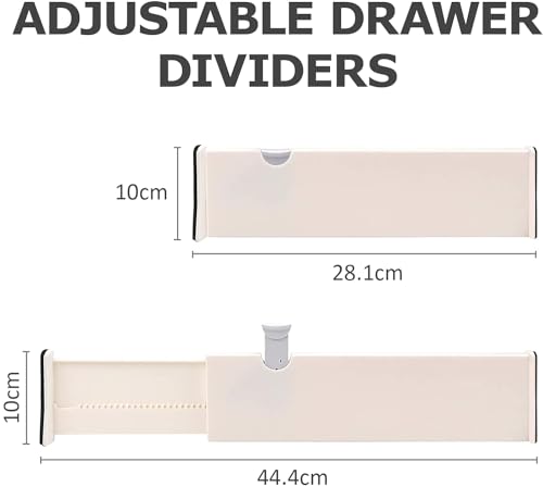 - Adjustable drawer divider: extends from 28.1 cm to 44.4 cm to fit all drawer sizes from front to back or side to side. Please check the size before purchasing. !