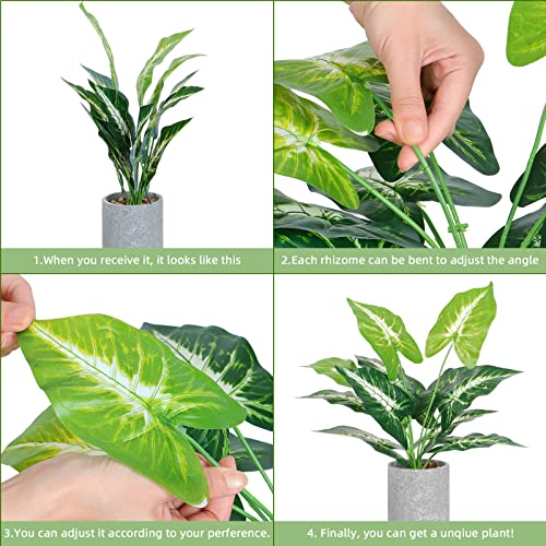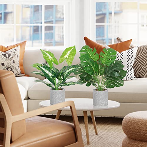 - 【Quantity & Material】: Set of 2 pcs fake plants are made from high-quality materials,odorless plastic leaves, gray paper pulp pots make our products look real. Please keep the pot indoors away from water.