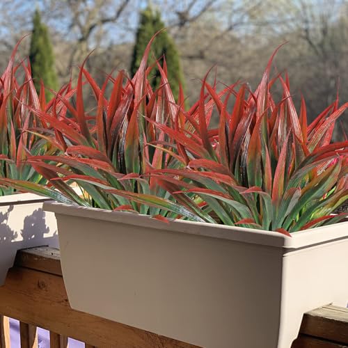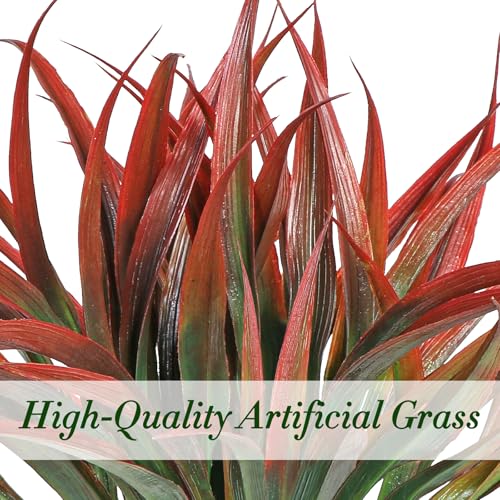 - 【Exquisite decoration】: Lifelike artificial grass plastic plants arrangement are deceptively natural to the untrained eye. for any landscape project or decorative style. these sunset red plants will be an excellent choice for your flower pots, vases, containers.