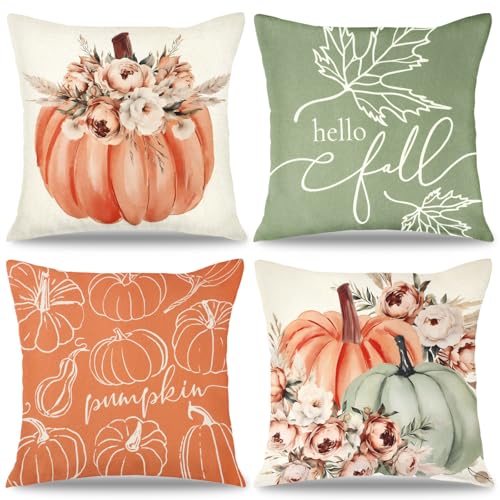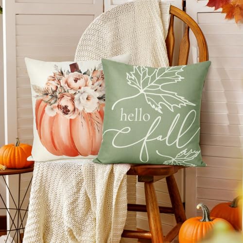 - 【Modern Pattern Design】The autumn cushion covers features pumpkin and peony patterns in two colors: green and orange. It is equipped with a hidden zipper design, making it more aesthetically pleasing and decorative. The prints on the pillowcase are very clear and vivid, with rich and vibrant colors.