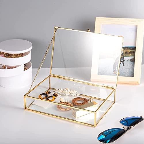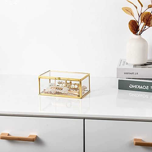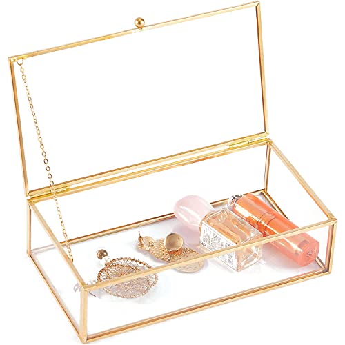 - 1.【Delicate and durable】: This glass jewelry box is made of metal and glass. The metal frame is coated with gold paint for good rust resistance, and the glass is three millimeters thick for durability.
