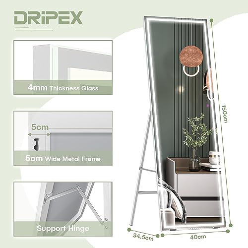 - 💡【Large Dressing Mirror】150 x 40cm standing floor mirror provides bright daylight illumination for your cosmetic and dressing needs. Adopt upgraded energy-efficient LED strip with 50,000 hours lifetime, light more concentrated and brighter. That can provide you many viewing angles and see your entire figure.