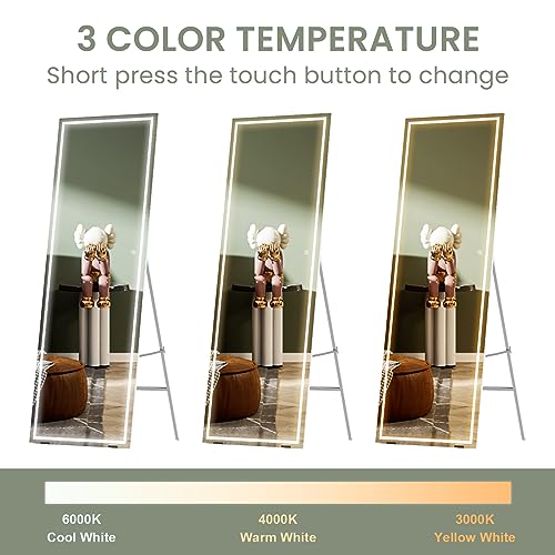 - 💡【3 Color & Adjust Brightness】The brightness and light temperature of this full length mirror are controlled by a smart touch button. Short press the switch to change the color temperature into white light, warm light or yellow light. Long press the switch for seconds to adjust the brightness to your liking.
