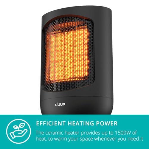 - ENERGY EFFICIENT ELECTRIC HEATER – The ceramic heater element delivers up to 1,500W of powerful heat, by rapidly heating up and evenly and efficiently distributing warmth.