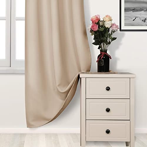 - *Your package includes 2 blackout curtain panels, measuring 90 inch long. The width of each curtain panel is 66 inch(total width 132 inch) and constructed with 10 rust proof silver grommets(1.6 inch inner diameter).
