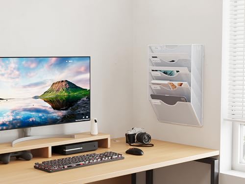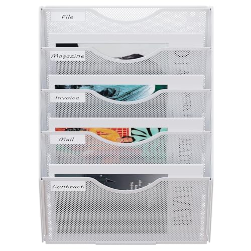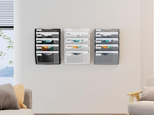 - Stylish: Elegant and contemporary mesh construction design that it can decorate your wall and keep your office or home clean and tidy, 5 tier wall file holder take full advantage of your vertical space