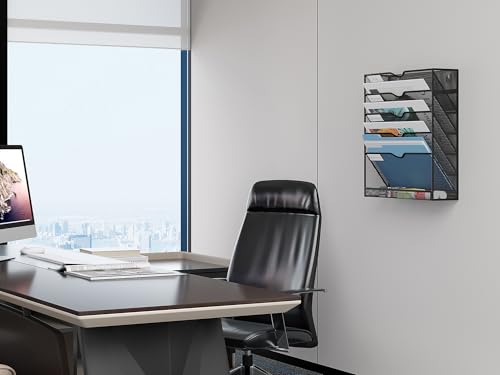 - Stylish: Elegant and contemporary mesh construction design that it can decorate your wall and keep your office or home clean and tidy,6 tier wall mounted magazine rack take full advantage of your vertical space
