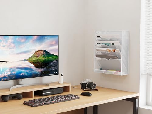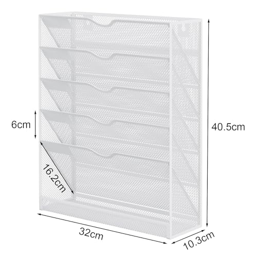 - Stylish: Elegant and contemporary mesh construction design that it can decorate your wall and keep your office or home clean and tidy,6 tier wall mounted magazine rack take full advantage of your vertical space