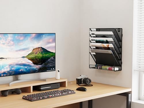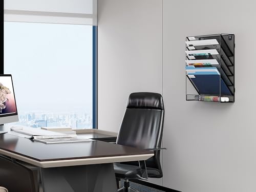 - Stylish: Elegant and contemporary mesh construction design that it can decorate your wall and keep your office or home clean and tidy,6 tier wall mounted magazine rack take full advantage of your vertical space