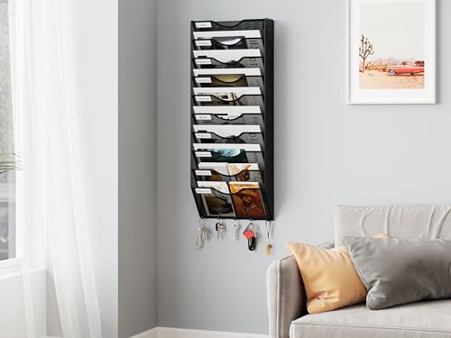 - Durable: Wall organiser is made of superior quality metal materials, with a strong construction and durable powder-coated finish, providing sturdy support. It is suitable for office paperwork, home document management or entryway organisation