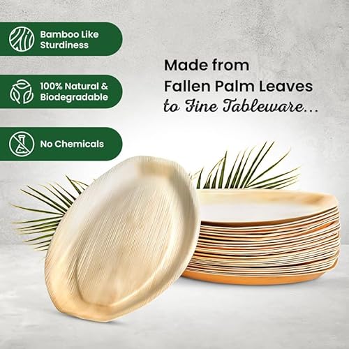- STRONG & STURDY – Palm Leaf plates are much sturdier than paper plates, and does not bend with hot food or liquid.
