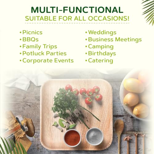 - Eco-Friendly and Sturdy: Embrace eco-conscious dining with our palm leaf serving platter. Crafted from fallen leaves, they are an eco-friendly and sturdy choice that doesn't contribute to deforestation. Plus, rest assured that your meals will be served without worry of content leakage. Serve meals with a side of sustainability!