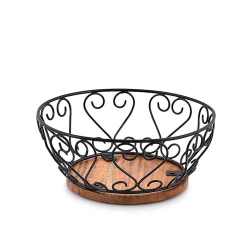 - Display your favorite fruits in style with the Iron and Wooden Wire Fruit Basket,Made from metal with a wide open-top design, this fruit basket lets you store an ample amount of fruits or vegetables.