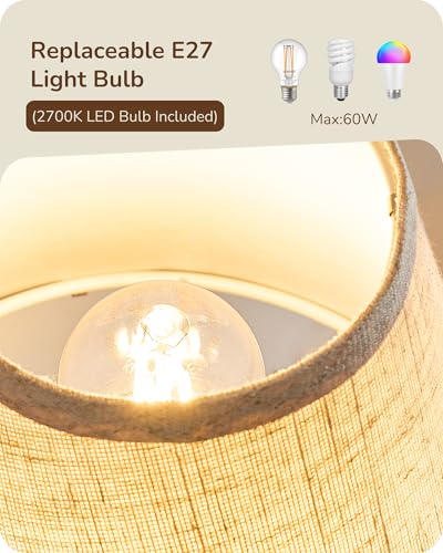 - [2700K Bulb Included] This lamp for bedroom comes with 2700K bulb for warm and cozy lighting right out of the box; standard E27 socket also allows you to replace the bulb to create various atmospheres to suit your mood and setting