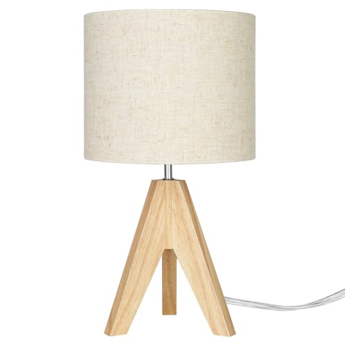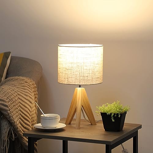 - 【Elegant and Modern Style】Solid wooden tripod base matches linen fabric lampshade,neutral color match with both contemporary and traditional furnishings;This desk lamp is perfect for the any indoor place, bedroom, living room, bedside, learn desk etc.