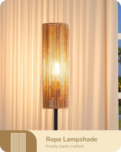 - [Handwoven Beauty] This rattan floor lamp features a rustic touch with its handwoven rope, meticulously crafted into a drum-shaped shade; its Eastern elegance brings a touch of nature and simplicity to your home decor, effortlessly blending with various interior styles to add warmth and sophistication to your living space