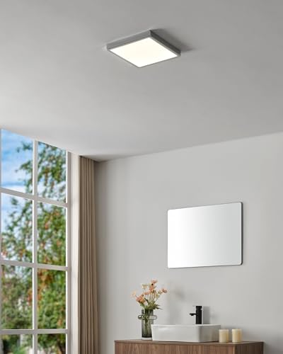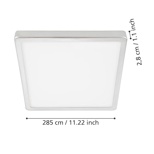 - This square and chrome coloured metal light fixture with its rounded corners and its white plastic LED cover is splash-proof (IP44) and fits seamlessly into the modern trend