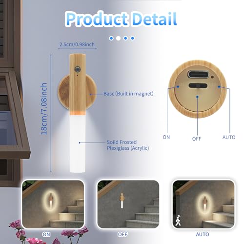 - 【Detachable and Portable Design】 The magnetic body allows for easy detachment and portability, making it convenient to move. Simple but classic wall lights to fit different scenes, Such as: decorative lighting in hallways, cabinets, Living Room, bedrooms, Picture, Stairs, Study, ect