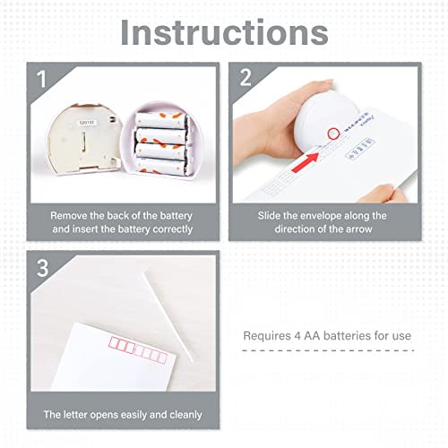 - 【Efficient operation】 There is no need to turn on the power. Just insert the envelope you want to open along the arrow, and the machine will power on it automatically. Power off is also automatic. Just support your hand on the envelope and you don't need any force.