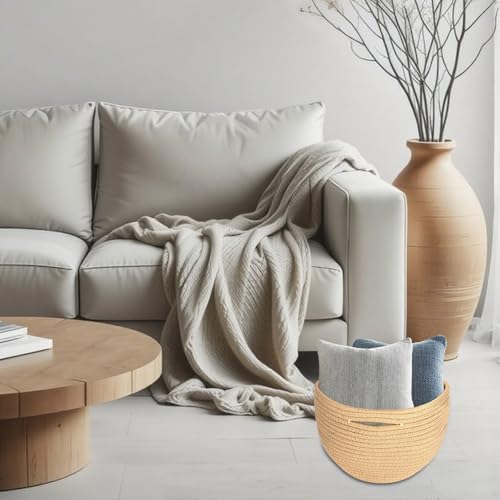 - 【Minimalist Decor for Any Room】 With a modern round shape and neutral tones, this decorative basket blends seamlessly with most home decor styles. It adds warmth and softness to your space while helping keep things organized.