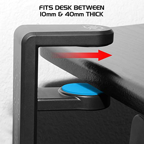 - FEATURES – Attaches to desks with a maximum thickness of 40 mm and a width of 10 mm for a nearly universal fit. The spring loaded clamp is easy to remove and replace.