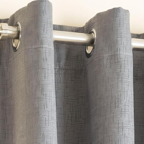 - READY MADE CURTAINS – Each package includes two grey silver woven embossed textured curtains, both measuring 46” wide by 54” long (117 x 137 cm), with an eyelet header for easy installation and smooth opening & closing. Silver eyelet rings have an inner diameter of 4cm.