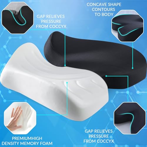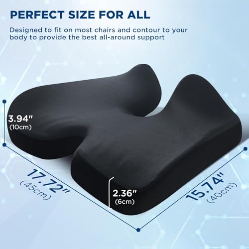 - 【Perfect Gift for All】Are you wondering what kind of gifts for friends and family? Our coccyx seat cushion is perfect New Year's Day gift, Valentine's Day gift, Mother's Day gift, Father's Day gift, Thanksgiving gift, Christmas gift, Halloween gift, or birthday gift for office workers, drivers, or people who sit for long periods of time. Memory foam seat cushion can not only help relieve pressure on the tailbone, but also help improve sitting posture. If you have any question about office chair cushion,please tell us at any time. We will be supportive respond you within 24 hour.