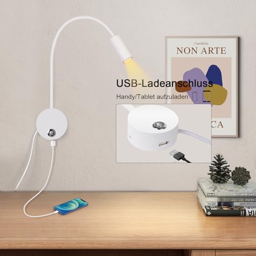 - Touch Button Adjustable Light – The wall reading lamp offers 3-color temperatures 3000K/4000K/6000K with short press to choose from. With long pressing, the light becomes brighter or darker. Power 3W, high quality LED.