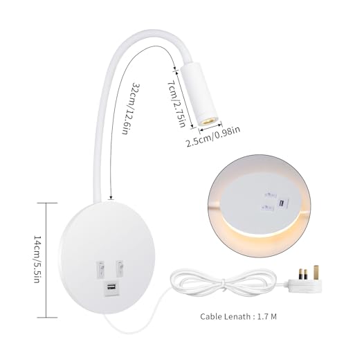 - 360° Flexible Gooseneck – Rotate the bedside lamp and align it in any position to get the best angle for different requirements.