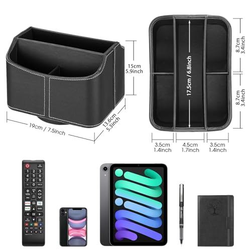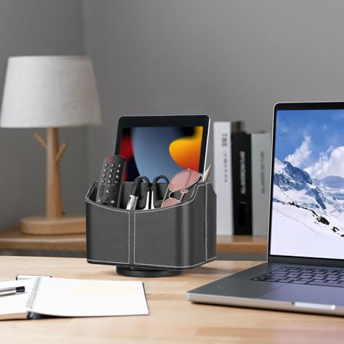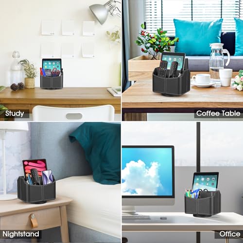 - 360° ROTATABLE BASE: Our remote control holder features a smooth 360° rotating base with 5 spacious compartments, allowing you to easily access all your items whether it's placed on a coffee table, beside the sofa, or on a desk in your office or home