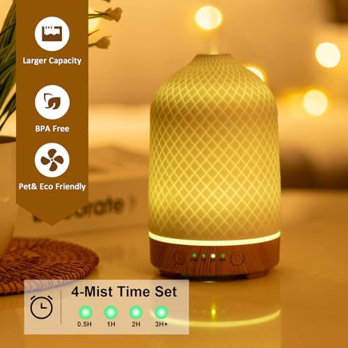 - Premium Quality Assurance: Our essential oil diffuser is made with high ceramic cover and safe base. The diffuser has passed a series of tests, with CE certification, you can use it worry-freely. Take this electric diffuser to show your sincere care and love for your beloved ones on Mothers' Day, Valentine's Day, anniversary, house-warming, wedding, birthday, party and Christmas.