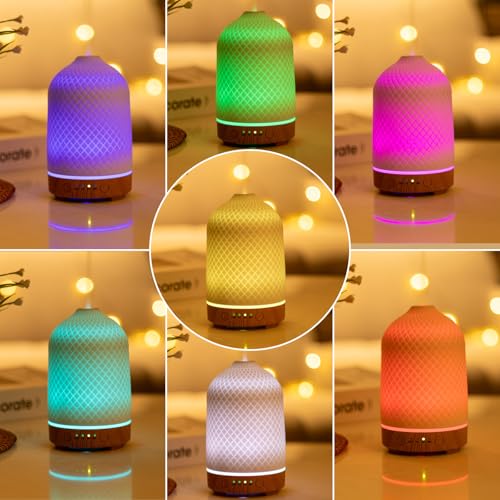 - Whisper Quiet Ultrasonic Technology: This ceramic essential oil diffuser adopted advanced ultrasonic technology (<30dB), it is extremely quiet without annoying noise when you sleep or work. The ultrasonic diffuser helps you create a peaceful and relaxing aromatic space.