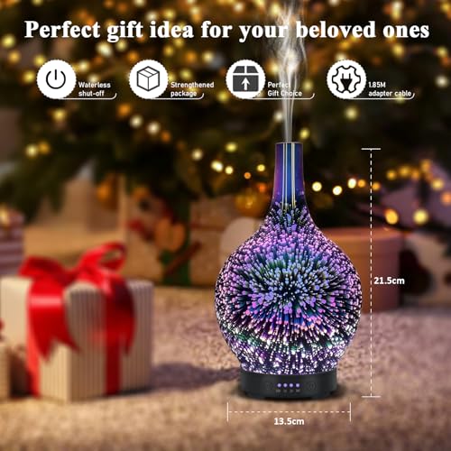 - Ideal Gift Choice: Worried about what gift to prepare for wife on the wedding anniversary? Want to give your daughter a Christmas gift but can't figure out what she likes? Perplexed with what heart-warming surprise for your parents’ birthday? We've got you covered! Our glass firework diffuser comes securely packaged in a gift box, it is easy to operate, safe to use, making it quite suitable to all ages. How much does the daily happiness cost? Maybe just the price of this electric oil diffuser.