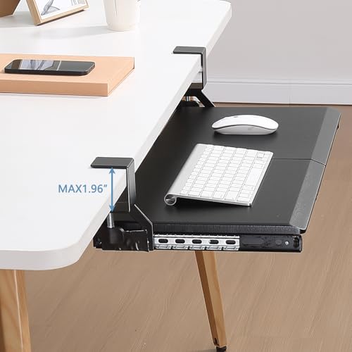 - 【THE CLAMP ON TRAY】C clamp design You won't have to worry about damaging your desk. easily mounted to desks up to 5cm thick, It is compact, lightweight, scratch-resistant, and can hold most keyboards and mice weighing up to 10kg.