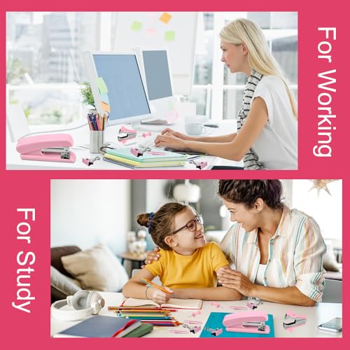 - 【Comprehensive Office Essential Kit】 This pink office set includes 1 stapler, 1 staple remover, 1000 staples, 1 tape dispenser, 1 roll of tape, 1 pair of office scissors, 20 push clips, 7 large clips, 13 small clips, 23 paper clips, and 5-color index labels. Such a rich combination is enough to meet your various needs in school and office, and is an ideal choice for creating an efficient working environment.