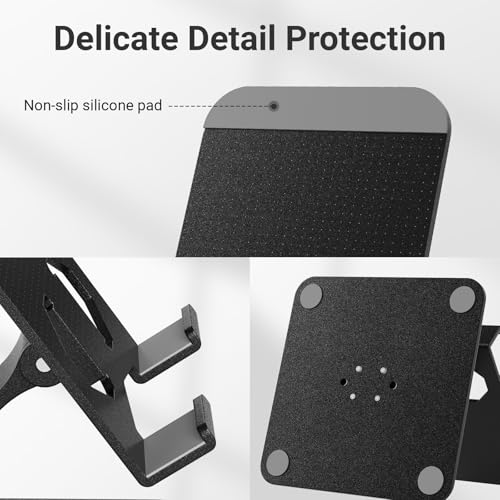 - 【 Fully Foldable and Portable 】Simple design, adjustable viewing angle and height. The double folding design allows this phone stand for desk to be placed in a pocket and carried with you to handbags or backpacks.