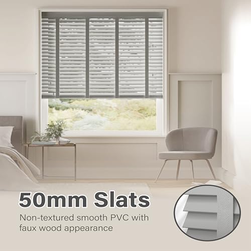 - Perfect fit blinds Customization: Faux Wood Venetian Blinds can be trimmed to fit various window sizes with a blind cutter. Bottom slats can be removed to shorten the drop. Each Salt comes with 50mm width and tape comes with 25mm width.