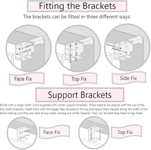 - Mounting and Size: This size is 45cm wide by 150cm drop. Blinds come with multi mounting brackets for face, top, or face mounting. Fittings are included. Secure taut cords with a child-safe cleat installed out of reach of children and pets. These heavy blinds require more force to operate.