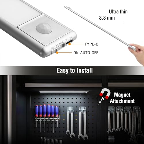 - Motion Sensor Technology: Our under cabinet light has a sensitive motion sensor that automatically turns on when it detects movement within 10ft. It also has 3 modes – ON, AUTO, and OFF – to suit your needs