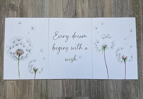Eviepops Prints Dandelion Quote Wall Art Set of 3 Unframed Prints, Plant Decor, Living Room Bedroom Poster Home Decor, Every Dream Begins with a Wish (A4)