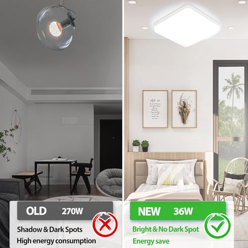 - 【Energy-saving】 The brightness of this 36W LED ceiling light is equivalent to that of a traditional 270W incandescent lamp, providing up to 3240LM of brightness while consuming less power. This results in a significant 85% reduction in electricity bills