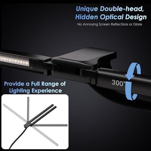 - 【Double Head Design & Remote Control】Rotatable double lamp head design, adjustable to more angles. This Monitor lamp is also equipped with a wireless remote control, allowing you to control the light more portablely. It is ideal for large monitors or dual monitors and architect desks, etc., allowing you to have a good lighting environment when working, studying, drawing, etc